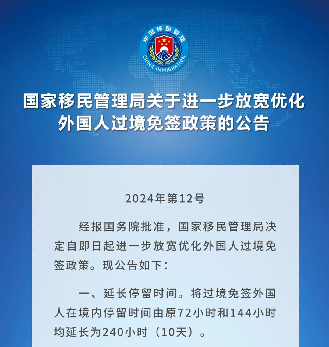 詳細信息來源: 中國過境免簽政策全面放寬優化